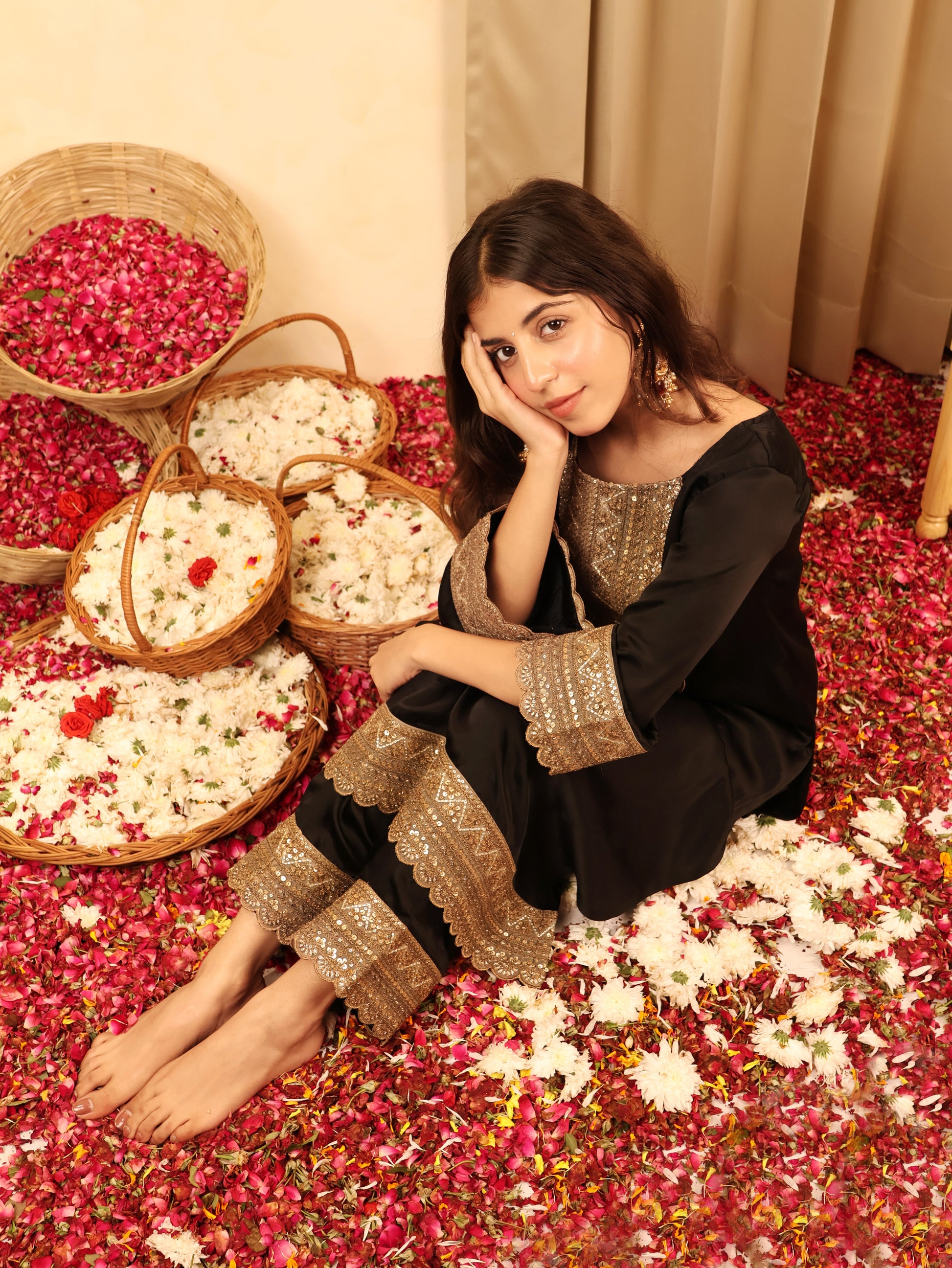 Each piece at House of Bindiya is crafted in limited quantities using thoughtfully sourced fabrics, subtle detailing, and silhouettes designed to transcend trends. Our garments carry the quiet elegance of modern yet Indian expression—where every thread tells a story.